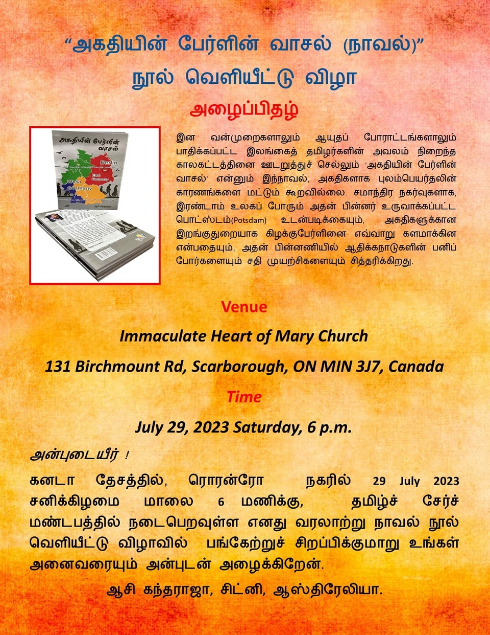 If you have an event you’d like us to post, a suggestion on how we can make our calendar better, or any other question, please email us at info(at)torontotamil.com. You can also complete our online event submission form. We look forward to hearing from you!