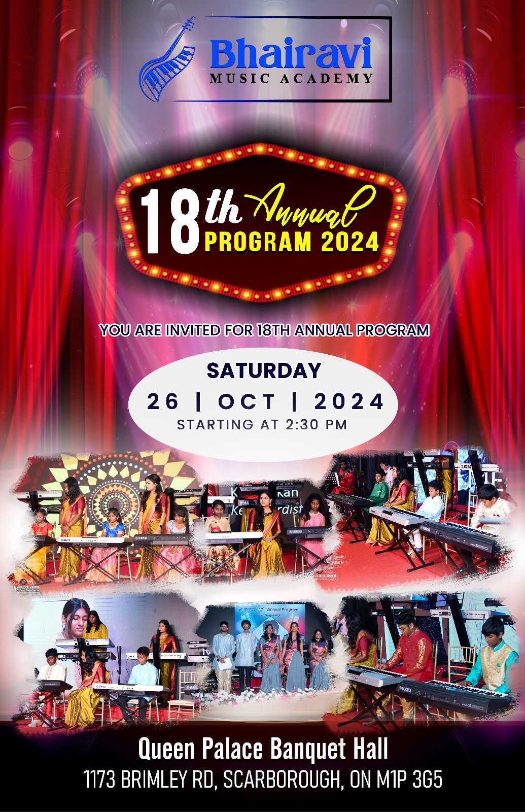 Queen Palace Banquet Hall 1173 Brimley Rd, Scarborough, ON, CanadaBhairavi Music Academy - 18th Annual Program 2024