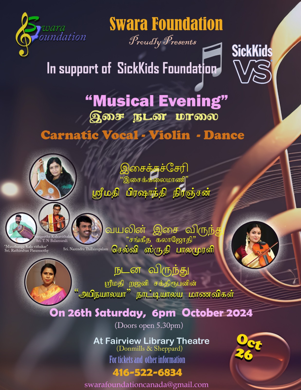 Fairview Library Theatre 35 Fairview Mall Dr, North York, Ontario, CanadaMusical Eventing Carnatic Vocal - Violin - Dance