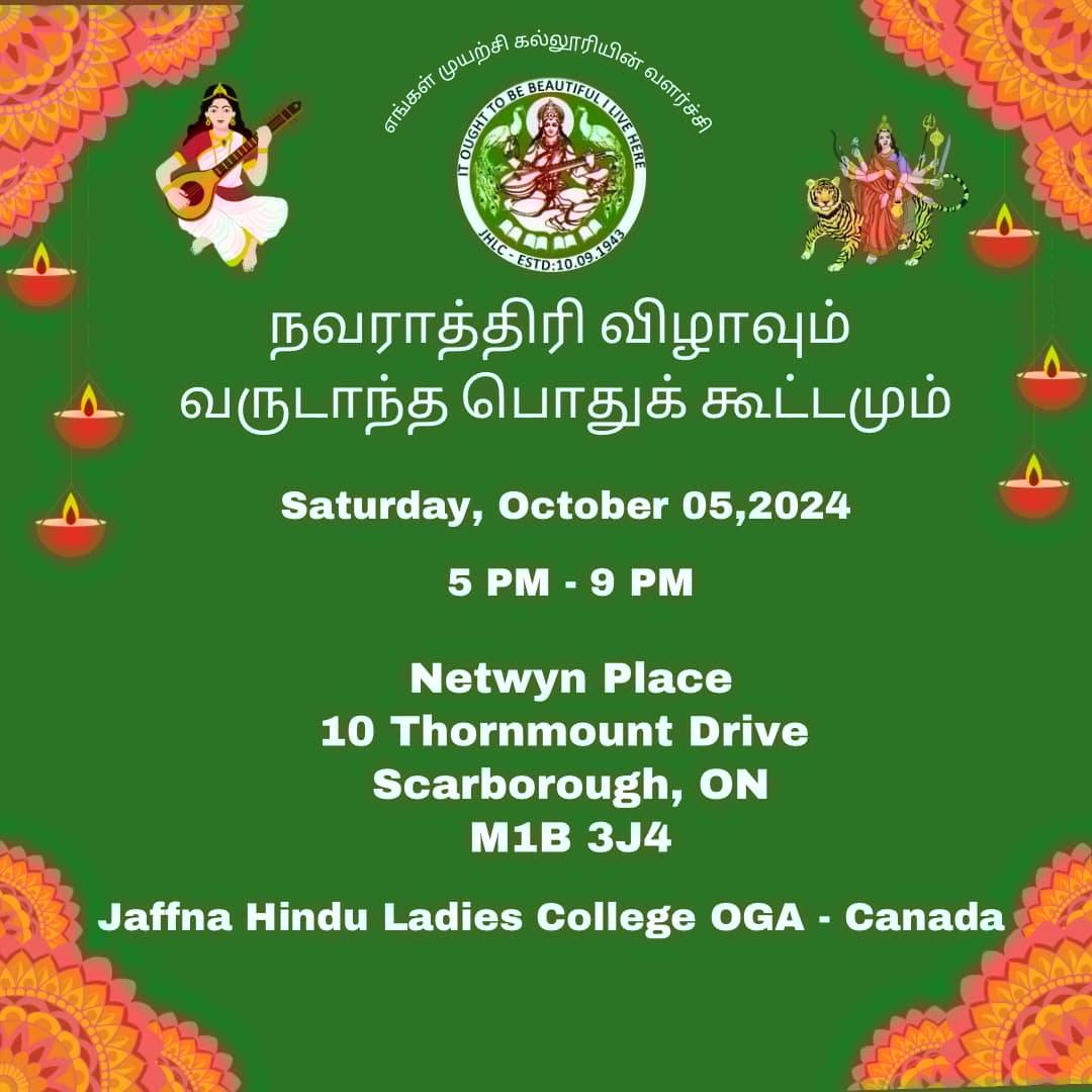 Netwyn Place 10 Thornmount Dr, Scarborough, ON, CanadaJaffna Hindu Ladies College OGA's AGM & நவராத்திரி விழா