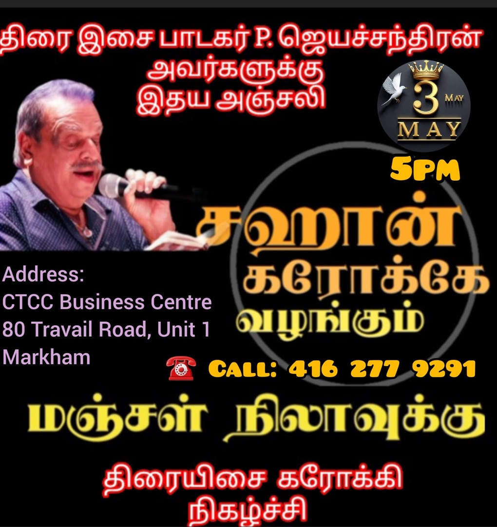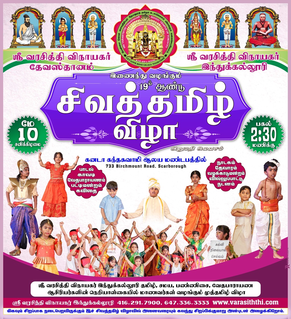 If you have an event you’d like us to post, a suggestion on how we can make our calendar better, or any other question, please email us at info(at)torontotamil.com. You can also complete our online event submission form. We look forward to hearing from you!
