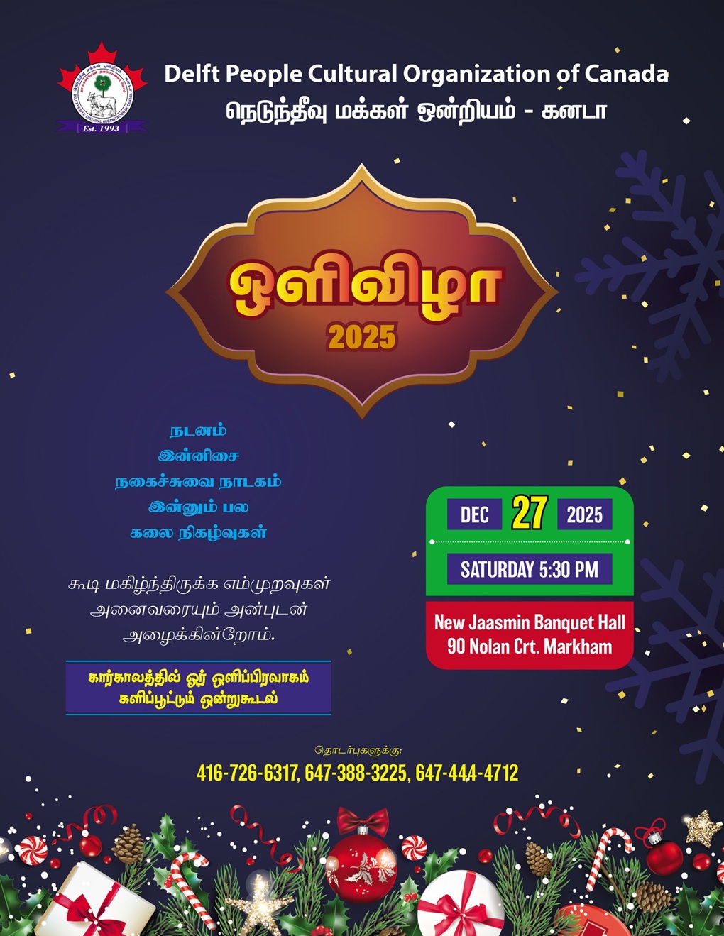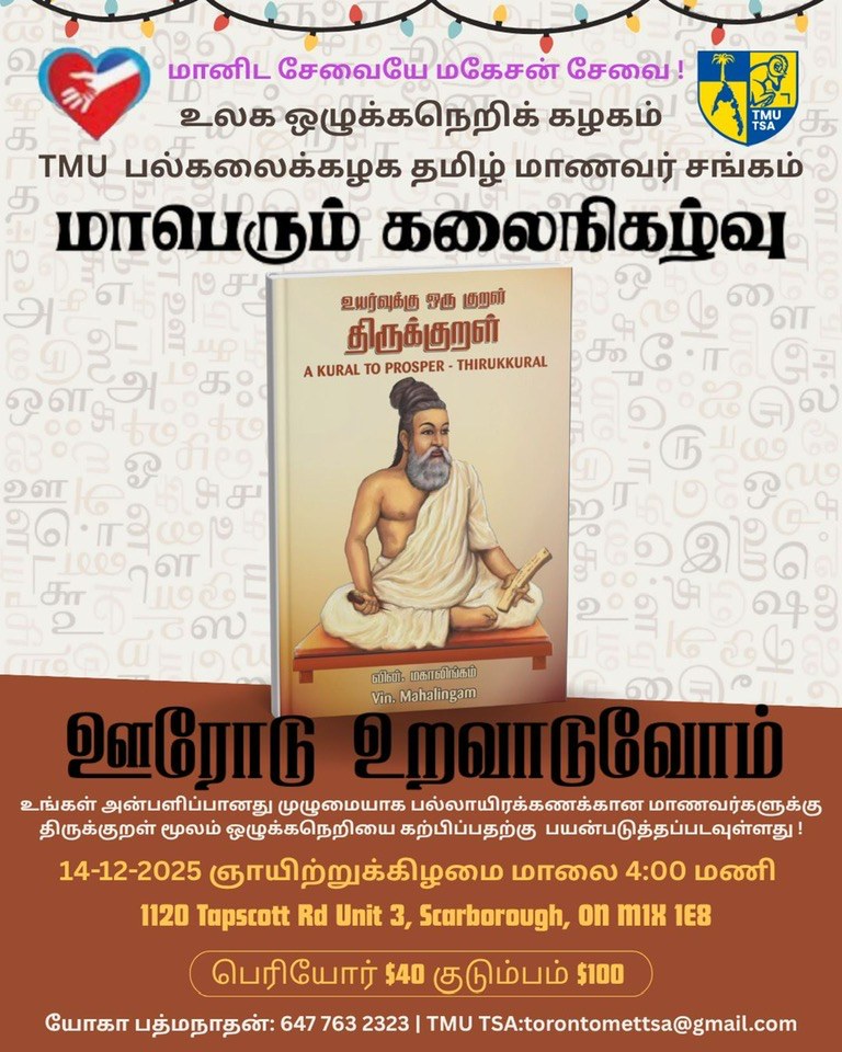 If you have an event you’d like us to post, a suggestion on how we can make our calendar better, or any other question, please email us at info(at)torontotamil.com. You can also complete our online event submission form. We look forward to hearing from you!