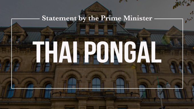 பிரதம மந்திரி ஜஸ்ரின் ட்ரூடோ, தைப்பொங்கலை முன்னிட்டுப் பின்வரும் அறிக்கையை இன்று வெளியிட்டார்: