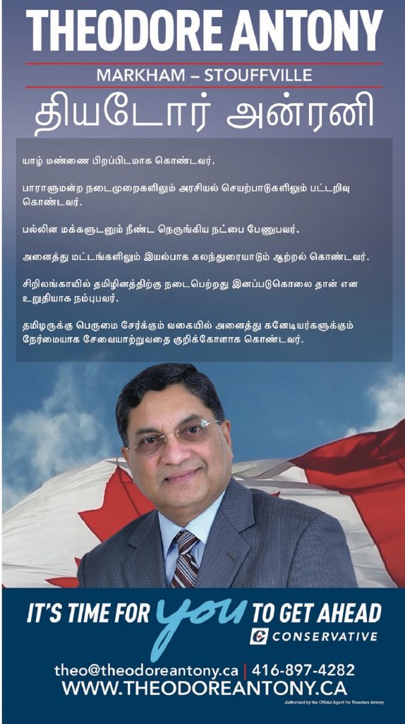 சிறிலங்காவில் தமிழினத்திற்கு நடைபெற்றது இனப்படுகொலை தான் என உறுதியாக நம்பும் இவர் தமிழருக்கு பெருமை சேர்க்கும் வகையில் அனைத்து கனேடியர்களுக்கும் நேர்மையாக சேவையாற்றுவதை குறிக்கோளாக கொண்டு தேர்தல் களத்தில் நிற்கிறார்.